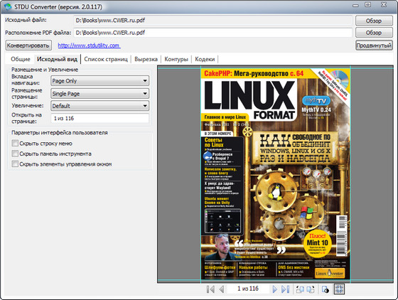 STDU Converter — конвертор DjVu в PDF всего в два клика. Вы можете конвертировать только часть книги или ее целиком, а также построить свое дерево документа на выходе.