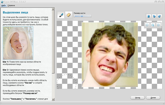Face Off Max - эта простая в использовании программа поможет Вам сделать собственное оригинальное фото, наложив, например, "свое лицо" на чужую фотографию. Наверно Вы хотя бы раз в жизни задумывались над тем, как бы Вы смотрелись, имея совершено другое тело? Не хотелось бы Вам иметь в своей коллекции фотографию, где Вы лично присутствуете в компании знаменитостей или на обложке известного журнала? Отлично, теперь Face Off Макс позволит вам наложить одно фото на другое и от души позабавить своих друзей, знакомых и коллег.