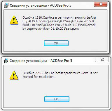 Теперь поставить после неё не могу сборку ACDSee Pro v5 Build 110 Final RePack by Loginvovchyk от 01.10.201