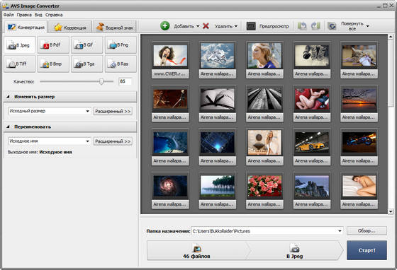 - Конвертировать несколько графических файлов из одного формата в другой;