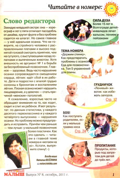 В журнале «Здоровый малыш» вы найдете ответы на вопросы по уходу, воспитанию, здоровью, развитию ребенка. На ваши вопросы отвечают врачи, специалисты нетрадиционной медицины, травники, астрологи, опытные родители.