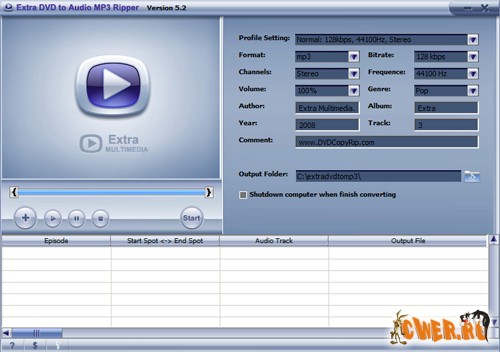 Скачать Extra DVD to Audio MP3 Ripper v5.2 (3,38 МБ):
