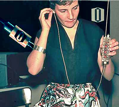 По микроэлектронной части роль главного героя отводилась навигационному компьютеру для Аполлонов (Apollo Guidance Computer, AGC). До того момента первые чипы были относительно медленные и продавались по цене в несколько раз больше аналогичного набора дискретных элементов. И только в авиакосмических применениях миниатюрность и энергоэффективность оказались важнее недостатков, хотя ИС содержали лишь несколько компонентов. Уже в 1961 г. коллега Килби Харви Крэгон сделал демонстрационный “Молекулярный электронный компьютер” для ВВС США, в котором 587 ИС производства TI заменяли 8500 отдельных деталей. В этом же году чипы Fairchild уже применялись в простых компьютерах.