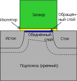 Транзистор на цельной подложке (какую до сих пор использует Intel) имеет утечку тока из канала, когда в нём полем затвора формируется обращённый слой. Подложка (даже если она заземлена) вытягивает часть носителей заряда в обеднённый слой.