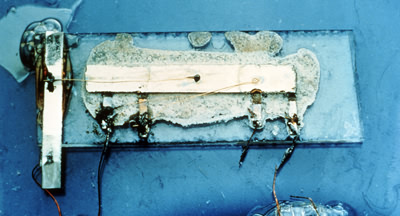Патент Нойса на планарную ИС. Тут все контакты находятся уже по одну сторону от кремниевой пластины.