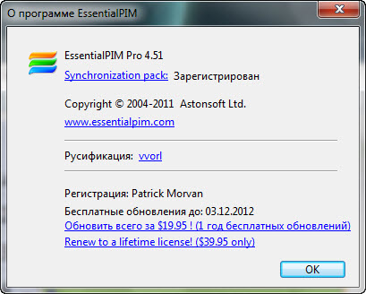Скачать программу EssentialPIM Pro 4.51 (9,37 МБ):