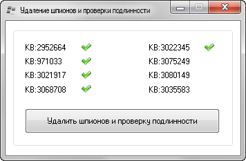 • Не были интегрированы следующие обновления телеметрии и обновления до Windows 10 (обновления скрыты и более загружаться не будут):