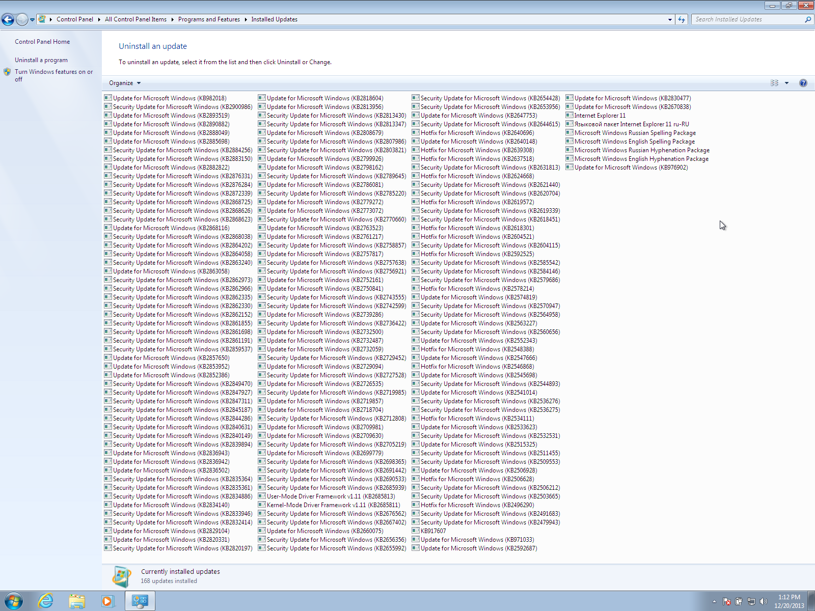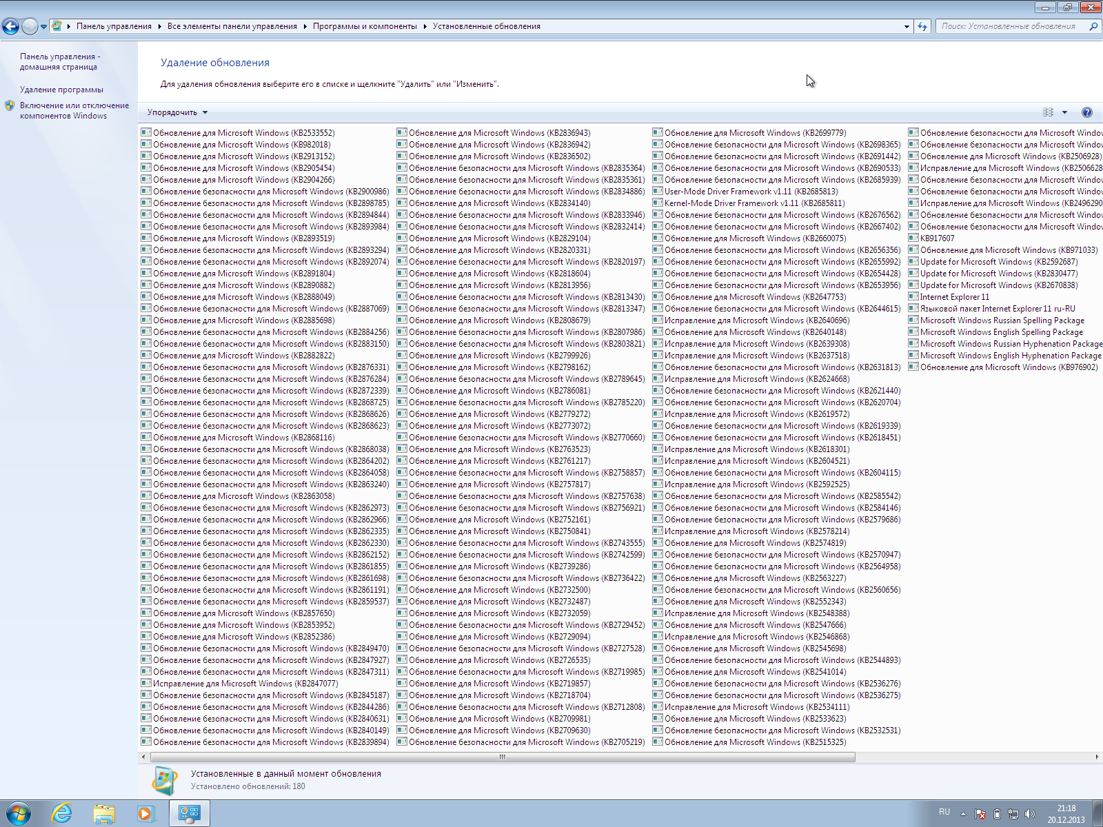 Выбор языка Выбор языка Рабочий стол Свойства диска Установленные обновления