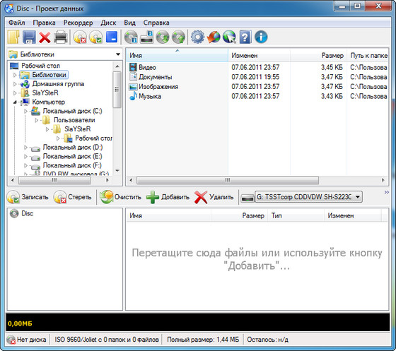 Создание CD/DVD с данными: