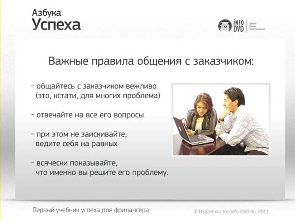 - как общаться с заказчиками, чтобы они надолго остались вам «верны» после первого заказа