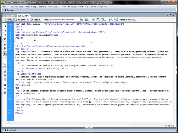 • Расширение средств Dreamweaver. Преобразование страницы в XHTML и в другие версии