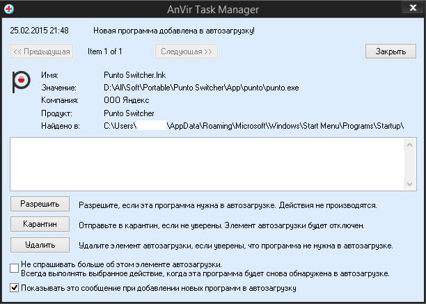 После установки портабельной версии, прога автозапускается, работает всё хорошо, а в автозагрузке её не видет ни анвир, не авторан, ни рег органайзер)) Чудеса и только))