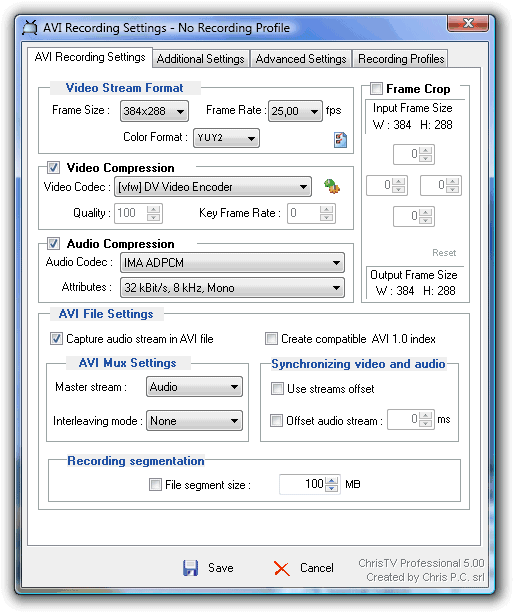 -- Advanced Recording Features You can use Deinterlace Filters, Image Processing Effects while recording (AVI and soft MPEG) and other settings -- AVI Recording Profiles for AVI recording settings