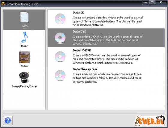 RecordMax Burning Studio - это программа для записи и копирования любой информации - от простых данных, Audio CD до High-Definition Video. При этом поддерживаются почти все известные приводы СD/DVD. Хотите записать себе диск с музыкой и слушать в машине? Нет ничего проще! RecordMax - это еще аудиориппер и аудиоконвертер , поддерживающий популярные форматы: mp3, wma и т.д. Если у вас есть видео, почти все равно в каком формате, RecordMax позволит вам записать Video CD, Super VCD или даже DVD video. При этом поддерживаются Blu-Ray диски и двуслойные DVD. Программа позволяет стирать, перезаписывать, или полностью копировать диски, создавать ISO файлы, и еще много полезных функций. Скорость записи и другие опции могут выставлятся автоматически при желании. RecordMax имеет интуитивно понятный интерфейс.