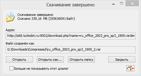 Скачать пакет Microsoft Office Professional 2003 SP3 (339,16 МБ):