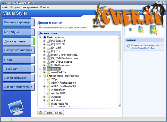- возможность установить уникальную иконку для каждого диска, папки, пункта в Избранном или в меню "Пуск";