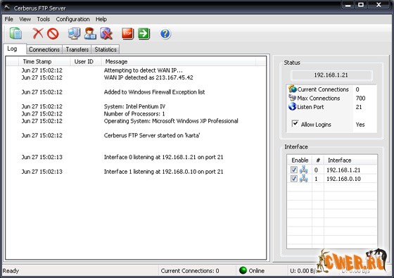 Скачать Cerberus FTP Server 2.48 (2,5 МБ):