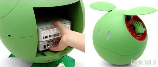 Если вас посетило желание спрятать свой компьютер в какой-то забавный компьютерный корпус, то, возможно вам понравится такой в виде аниме-персонажа Haro. Этот смешной говорящий робот сможет вместить небольшой компьютер вроде Mac Mini и будет по вашей команде двигать ушами, руками и ногами, моргать глазами и что-то выкрикивать. Все его возможные действия довольно сложно описать словами, это просто нужно видеть, поэтому предлагаем вашему вниманию видео с его участием (далее). В комплекте идет также пульт ДУ, с помощью которого можно будет как управлять движениями Haro, так и включать/выключать компьютер.