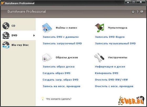 BurnAware - простая и в тоже время мощная программа для записи и копирования дисков формата CD, DVD и Blu-Ray. Программа позволяет выполнять все основные задачи по записи: работа с носителями CD/DVD, Blu-Ray; запись Audio-CD и DVD-Video; копирование и прожиг образов; клонирование дисков; поддержка мультисессии и многое другое. Имеется многоязычный интерфейс, включая русский и поддержка Windows Vista.