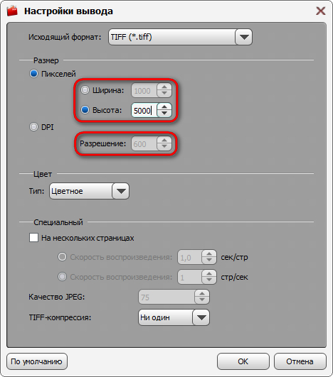 К преимуществу отнесу то, что при конвертации из pdf в tiff программа предлагает не только выбор dpi, но как альтернативу размеры листа по высоте или ширине: