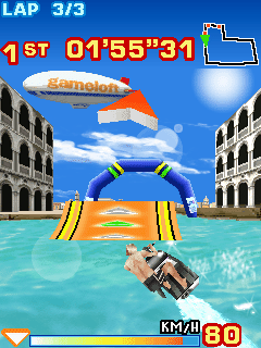 Игра для мобильных телефонов. Промчись по 20 трассам в таком реалистичном трехмерном мире, что тебе потребуется спасательный жилет! Размеры экранов: 176х220, 240х320.
