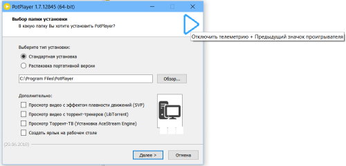 Мо способ - так же вполне себе способ )) А "справа от "Выбор папки установки" нажать на жёлтую (новую) иконку ("Отключить телеметрию + Предыдущий значок проигрывателя") тоже прикольно.