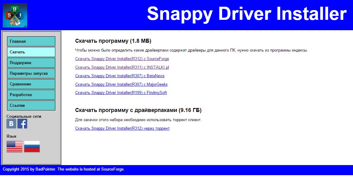 В описании расхваливается Snappy Driver Installer с размером 1,3 МБ (43 файла).