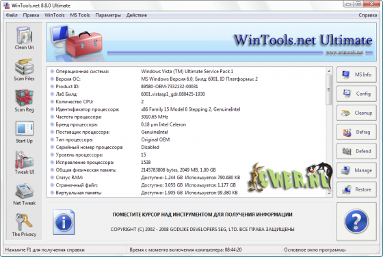 WinTools.net Ultimate – набор инструментов для оптимизации операционной системы Windows. В состав программы входят компоненты для полного удаления нежелательных программ и «мертвых» ссылок реестра, а также для контроля процессов, настройки системы, интернет-соединений и интерфейса. Кроме того, имеются утилиты для надежного хранения конфиденциальной информации. Работает на платформах Windows 2000, 2003, XP и Vista.