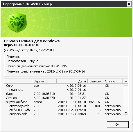 Но для себя смысла скачивать сканер не вижу, т.к. в программу не входит модуль автоматического обновления антивирусных баз, поэтому для того, чтобы просканировать компьютер в следующий раз с самыми последними обновлениями антивирусных баз, нужно будет снова скачать Dr.Web CureIt!