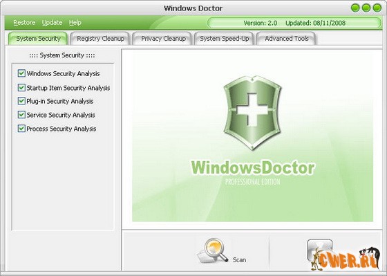 Windows Doctor - профессиональная программа для защиты и оптимизации операционной системы Windows. Сканирует, анализирует и устанавливает необходимые "заплатки" в вашу систему. Программа быстро ищет и очищает ненужные записи в системном реестре и поддерживает его в оптимальном состоянии. Убирает следы Вашего пребывания в интернете и использования программного обеспечения. Функция System Speed-Up анализирует информацию от центрального процессора, оперативной памяти и драйверов и разумно обеспечивает оптимизацию системы. комплект!
