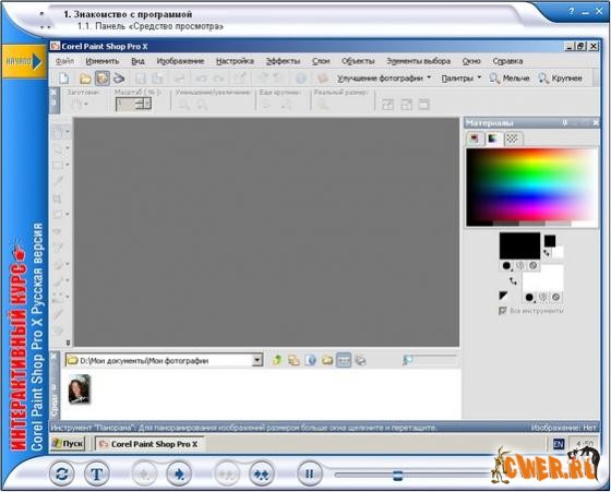 Интерактивный курс предназначен для начинающих пользователей и станет незаменимым помощником при изучении основ работы с программой. Благодаря данному курсу вы сможете легко и быстро познакомиться с ней: подробно изучите ее интерфейс и часто используемые команды, освоите простейшие операции, необходимые для работы, научитесь работать с изображениями, применять художественную коррекцию к фотографиям, использовать слои и различные эффекты. Программа включает 8 уроков, а также их текстовые версии с возможностью печати, что позволит изучать материал в удобном для пользователя режиме.