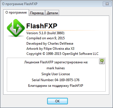 Скачать программу FlashFXP 5.1.0.3860 (5,21 МБ):