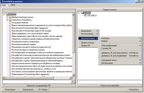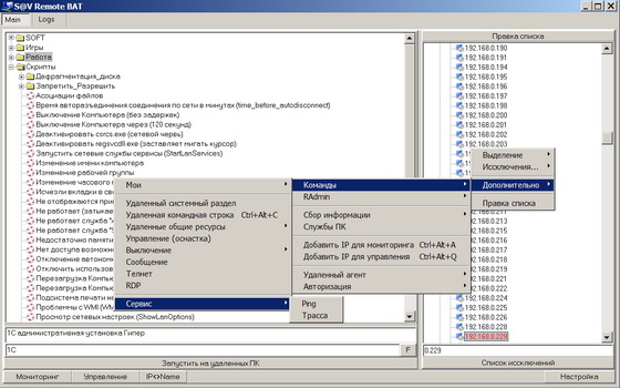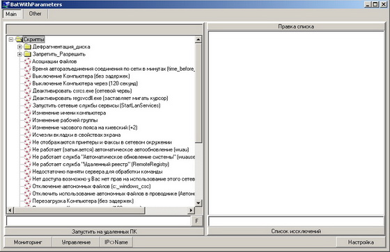 - Программа позволяет запускать удаленно и локально *.bat - файлы они же батники - на их основе можно выполнить что угодно!!!