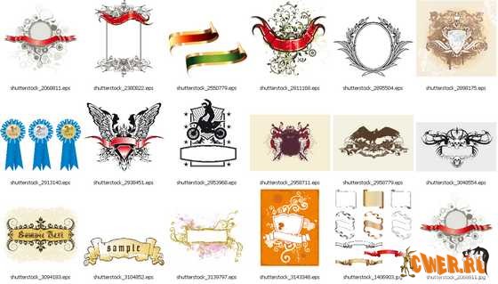 18 файлов в формате EPS от компании ShutterStock с лентами и рамками для текста