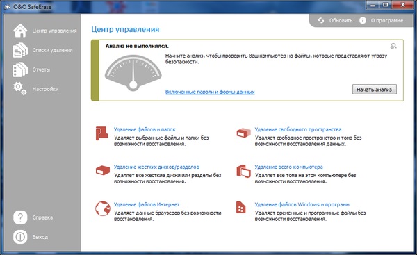 Основные функции O&O SafeErase 8: