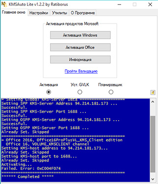 Да, KMSAuto Lite .. Его устанавливаю от имени администратора, запускаю от имени администратора...нажимаю на активацию Microsoft Office ив конце выходит такая ошибка failed Error : 0xC004F074 Скриншоты есть