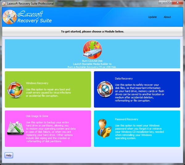 Lazesoft Recovery Suite – сборник разнообразных программ, предназначенных для восстановления потерянных данных и забытых паролей, а также «оживления» операционных систем Windows в случае возникновения форс-мажорных ситуаций.