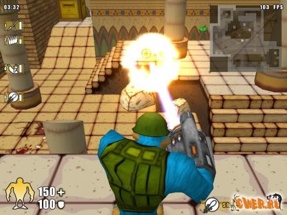Обезьяны стреляют в любом направлении, то есть если мы наведём прицел на центр стены, то обезьяна выстрелит в центр стены. Мы можем бежать и стрелять в противника, который находиться на уровень выше или бежит по лестнице. Когда у противника осталось мало здоровья, то если зарядить в него ракетой, обезьяну разорвёт на куски. Также в игре присутствует программа для создания карт (Map Edition).