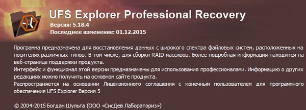 Скачать программу UFS Explorer Professional Recovery 5.18.4 (17,8 МБ):