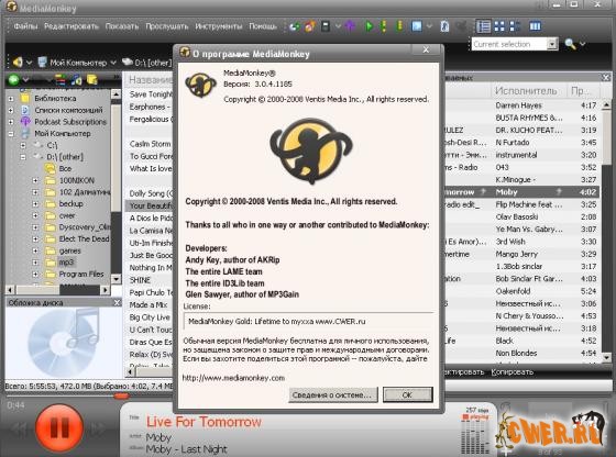 MediaMonkey - это программа для наведения порядка в Вашей музыкальной коллекции, хранящейся на жестком диске, CD/DVD дисках и в локальной сети. Она позволит быстро отредактировать теги, найти битые файлы или дубликаты, производить конвертацию файлов из одного формата в другой, сохранить на компьютер музыку с аудио CD диска в файлы OGG, MP3, WMA или создать и записать аудио CD диск, а так же загрузить музыкальные файлы в mp3-плеер. Программа поддерживает работу с аудио-файлами OGG, WMA, MPC, FLAC, APE, WAV и MP3 форматов и имеет встроенный проигрыватель с удобным интерфейсом.