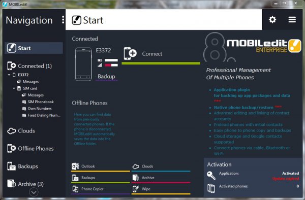 - Способность подключить множество разных мобильных телефонов и управлять их данными одновременно