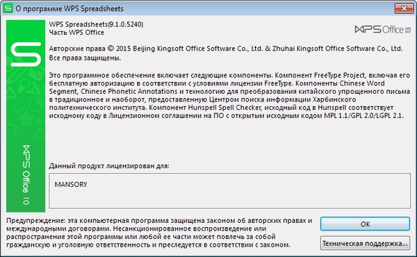Скачать программу WPS Office 2015 Premium 9.1.0.5240 (70,08 МБ):
