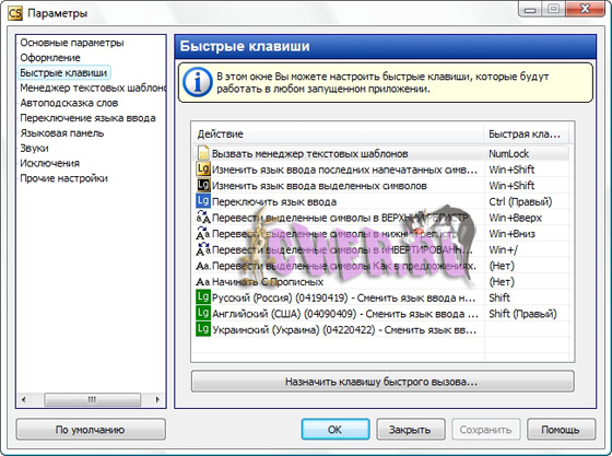 - Переключать язык ввода или раскладку последних напечатанных символов.