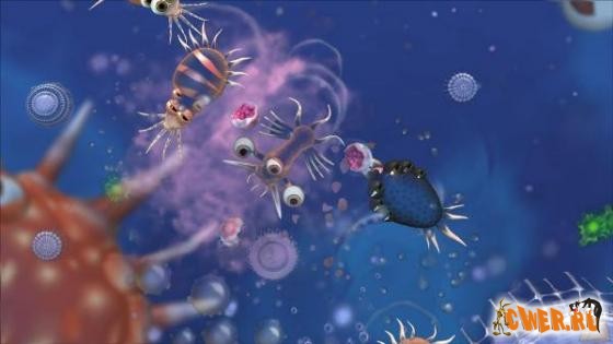 Spore (на первых порах игра называлась Sim Everything, но затем из соображений секретности ее переименовали) — это симулятор не отдельно взятой цивилизации и даже не всей планеты. Это симулятор целой вселенной. Игра стартует на самой нижней ступеньке эволюции. Мы, в роли амебы, плаваем в океане, поедаем другие микроорганизмы и всячески боремся за свое, пока еще микроскопическое место под солнцем — ни дать ни взять Pac-Man. Постоянно эволюционируя и размножаясь, наш вид со временем высвобождает для себя все больше жизненного пространства и становится все более и более сложным организмом. На этой стадии игра мутирует в натуральную action/RPG на манер Diablo: клик-клик-клик — чуть-чуть подросли, клик-клик-клик — получили новое умение, клик-клик-клик — нарастили третье щупальце и пятую ногу.