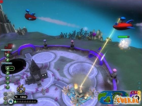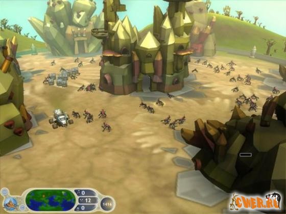 Проходит еще пара десятков миллионов лет (внутриигровых, конечно) — и вот уже под нашим началом оказывается не популяция диких зверей, а цивилизация разумных существ. Spore снова меняет кожу, превращаясь в подобие Populous. Вы отстраиваете города, развиваете экономику, двигаете вперед науку и технологии — короче, всеми силами тянете свое общество в светлое завтра. Ваши подопечные создают собственное государство, религию (или даже несколько религий), вступают в контакт с другими расами, которые развивались параллельно, затевают с ними кровопролитные войны и начинают выкачивать из планеты природные ресурсы (это уже натуральная Civilization). Освоив родной планетоид и высосав из него все соки, они принимаются за экспансию в космос, где им предстоит колонизация других звездных систем (к тому времени технологии дорастут до такого уровня, что небесные тела можно будет уничтожать одним щелчком мыши) и войны с инопланетянами. Заметьте, из амебы ваш вид может эволюционировать во что угодно — хоть в мерзких двуногих задохликов, хоть в саблезубых кашалотов, хоть в кротов-утконосов, хоть в летающих кроликов-людоедов.