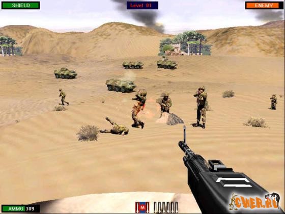 Время от времени нам дают подержаться за тяжелый спаренный отчетливо зенитный пулемет или, к примеру, миниган. Иногда даже можно вызвать поддержку, так сказать, свыше. Но соль игры — это не столько собственно отстрел врагов, сколько грамотное распределение боеприпасов. А как вам такой сценарий: всего стартового капитала — пресловутый пистолет, 15 (пятнадцать) патронов к нему, а от дальнего леска ненавязчиво ползут танки? На чай, видимо. Первая мысль: застрелиться. Вторая: застрелить разработчиков. Третья: «Это не просто так, надо подождать». И точно, не проходит и минуты, как залетный транспортник сбрасывает несколько ящиков с патронами, снарядами и ракетами. Хороши ночные миссии. Также есть файл editor.exe.