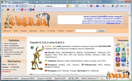 Mozilla FireFox - Очень быстро работающий браузер, причем быстрота работы заметна не только во время загрузки веб-страниц, но и при поиске в закладках и Истории. Сделан он на основе движка Mozilla и позволяет просматривать все веб-страницы в одном многовкладочном окне, а также обладает множеством других полезных опций, включая способность значительного расширения возможностей подключением плагинами (а выпущено их великое множество).