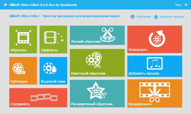 GiliSoft Video Editor - мощный видеоредактор для быстрого редактирования видеофайлов самых популярных форматов, а также создания домашнего видео, видео роликов для публикации в сети и просмотра в переносных устройствах. Прекрасно справляется с нарезкой любых видео с любым кодированием. Редактор имеет стильную оболочку, при этом каждый вид обработки может проводиться автономно от других.