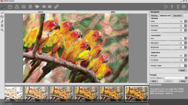 - AKVIS Pastel 3 предоставляет пользователям еще большую свободу творчества, позволяя создавать необыкновенные абстрактные шедевры по клику мыши.
