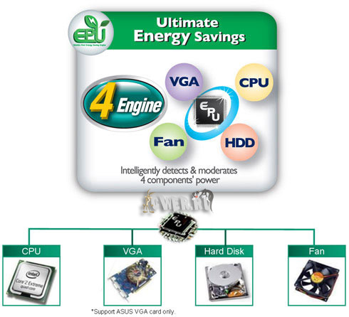 Решение выполнено в форм-факторе ATX, основано на наборе системной логики Intel P45 Express с южным мостом ICH10 и построено с использованием МОП-транзисторов с малым тепловыделением и низким сопротивлением в открытом состоянии, дросселей с ферритовыми сердечниками, а также более надёжных конденсаторов с твёрдым электролитом. Новинка снабжена прогрессивной технологией энергосбережения ASUS EPU-4 Engine, которая соразмерно возлагаемой на систему нагрузки в режиме реального времени регулирует питание центрального процессора и его кулера, а также графического адаптера и жёсткого диска. Кроме того, в изделии применена такая фирменная разработка, как ASUS Express Gate, благодаря которой всего за 5 секунд осуществляется загрузка операционной системы Linux со встроенной микросхемы памяти, после чего пользователь получает быстрый доступ к работе в интернете, прослушиванию музыки и просмотру изображений без необходимости запуска основной ОС.